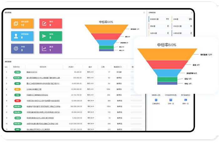 2. 以销售管道与漏斗指标(线索→商机→立项→投标→中标)驱动过程管理,结合预测模型识别高潜客户与风险单。