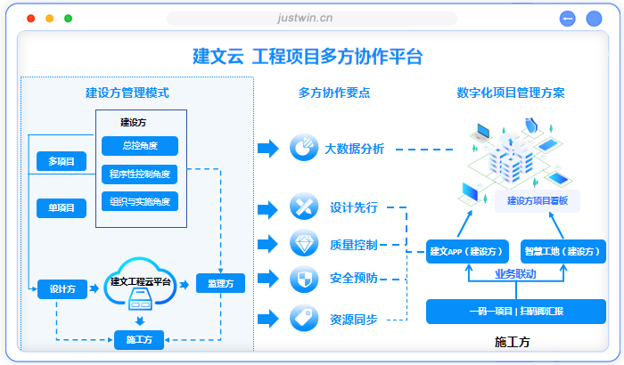 | 业主方 | 全项目/多项目的监管与审批视图 | 可配置数据域与操作边界,支持脱敏与审计 |
