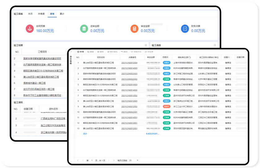 可对最终审定的决算金额进行精准记录与动态跟踪,为项目成本控制、效益评估提供关键数据支持,助力企业科学决策与财务管理。