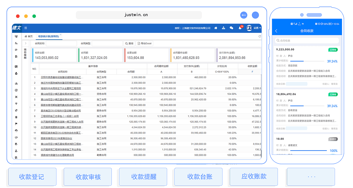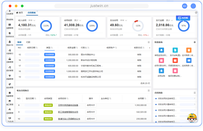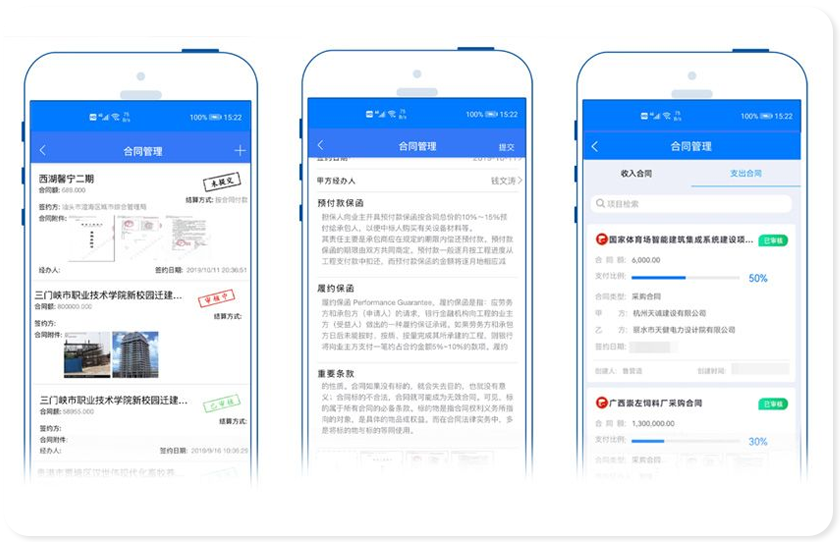 合同结算:支持工程计量结算、采购结算等不同合同场景下的多样化结算需求。