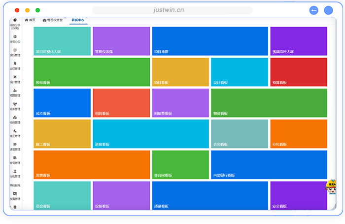 建文门户看板,以“岗位—业务域—项目范围”三层模型蒸馏数据,即:先按组织/部门/项目搭建看板与数据范围,再结合角色权限控制可见内容与操作能力,从而实现“不同岗位看到不同看板、不同数据、不同操作”, 从而实现“高层看全局、中层看过程、一线看执行”。